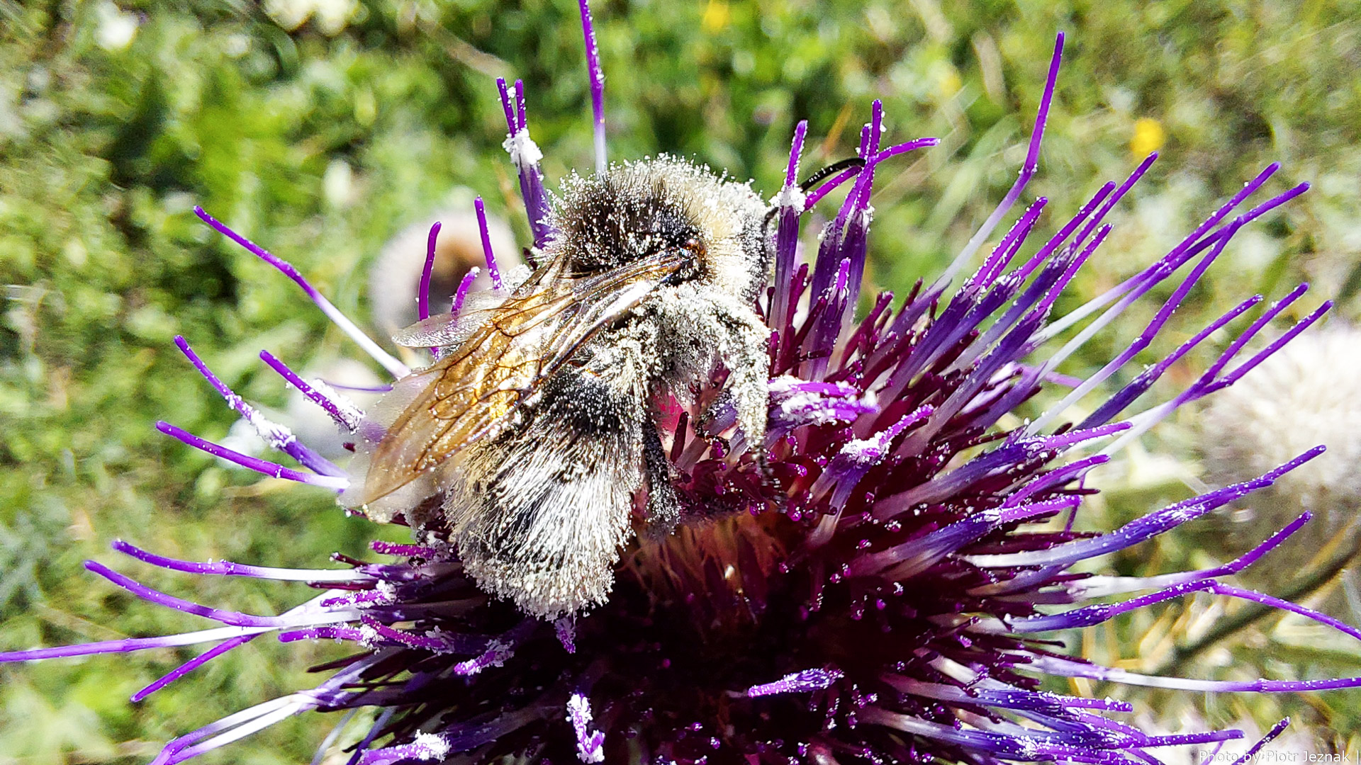 A tree bumblebee (Bombus hypnorum) during pollination on a thistle flower.
