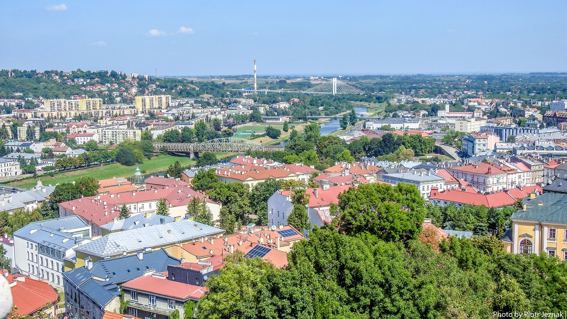 View from the Casimir Castle in Przemysl on the city and its bridges over the San river.