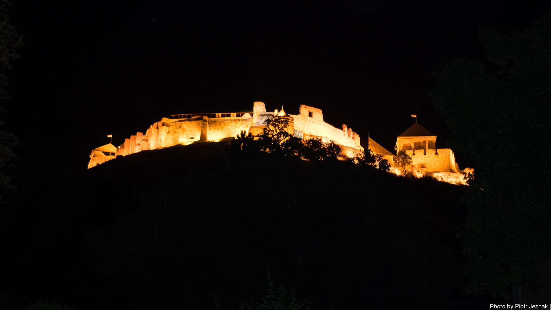 Castle of Sümeg at night.