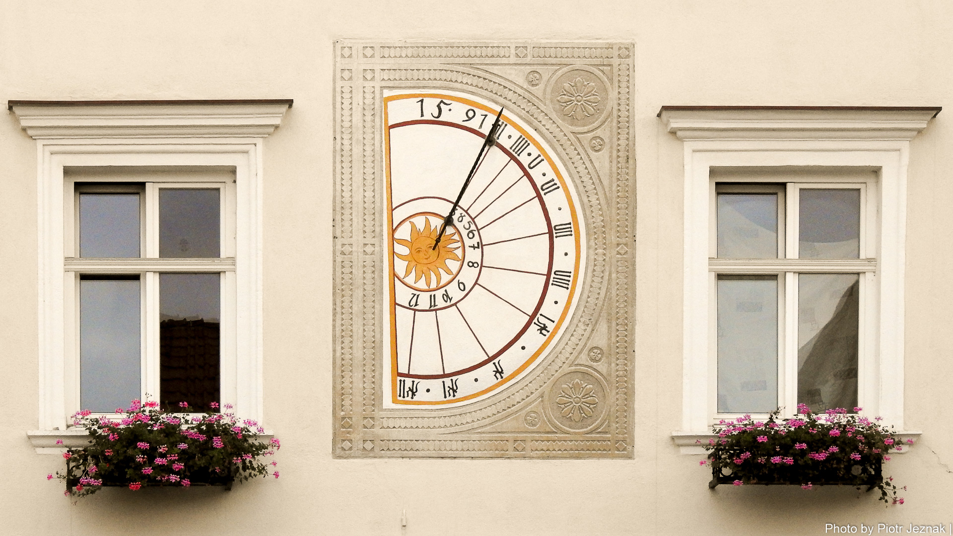 Façade sundial on Hauptplatz 3 in Neunkirchen.