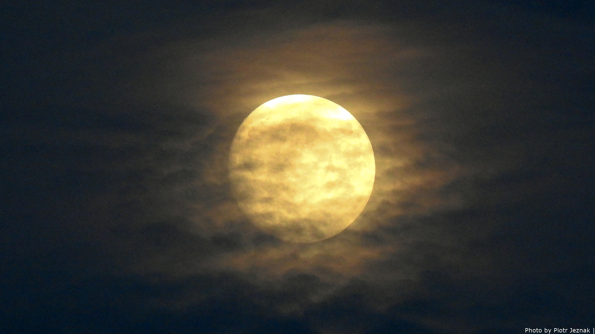 Full moon behind the clouds.