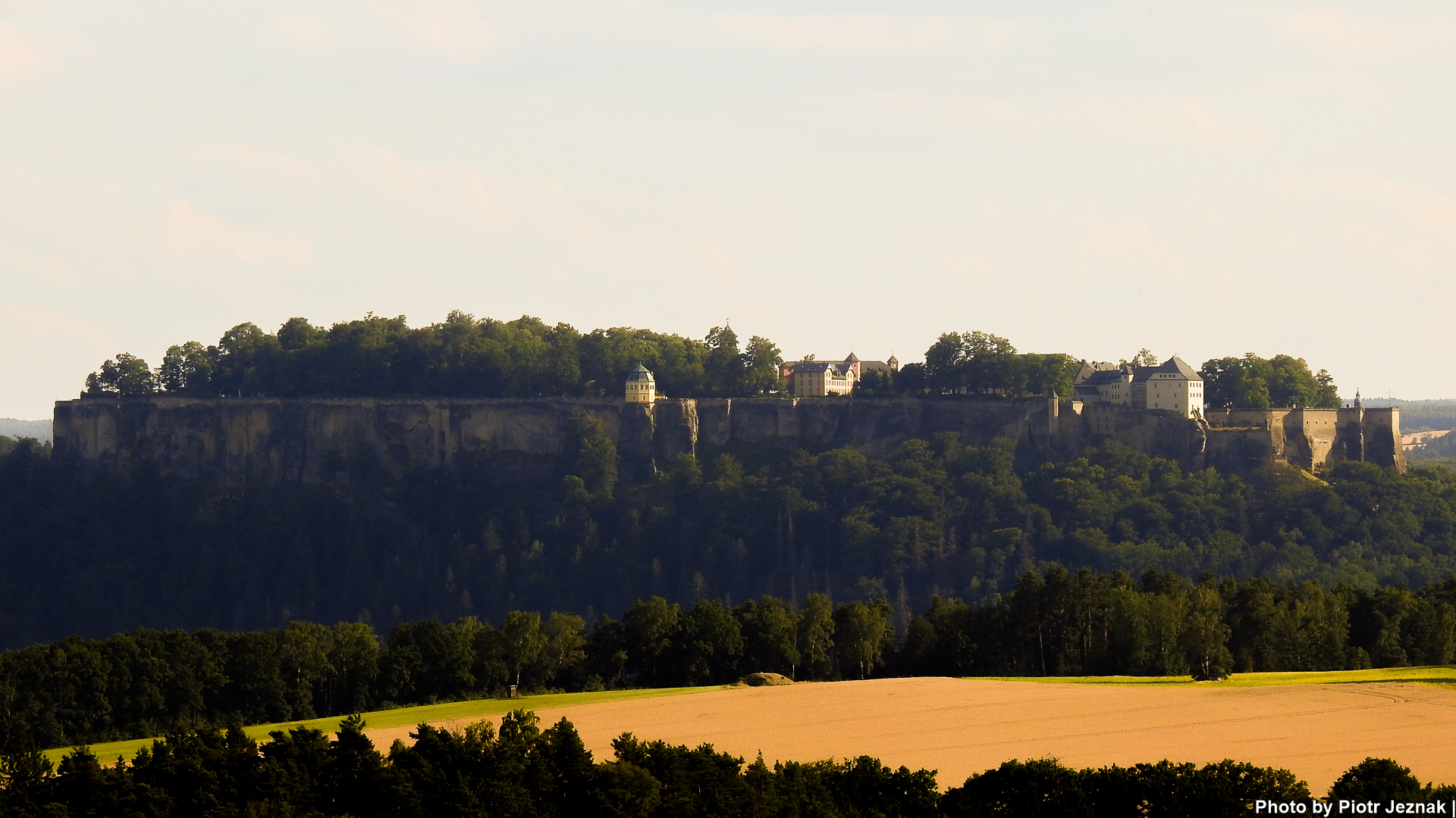 View from the Bastei rock formation on the north façade of Königstein Fortress.