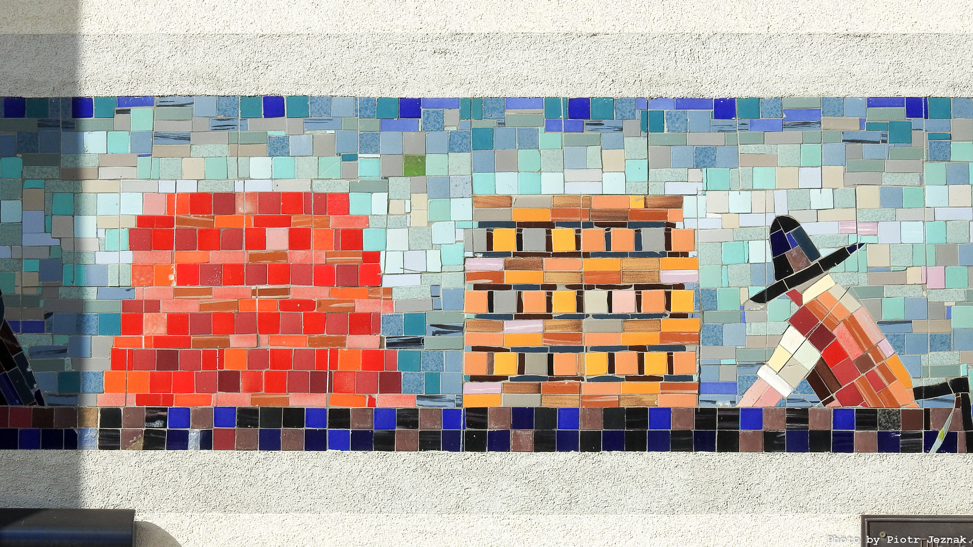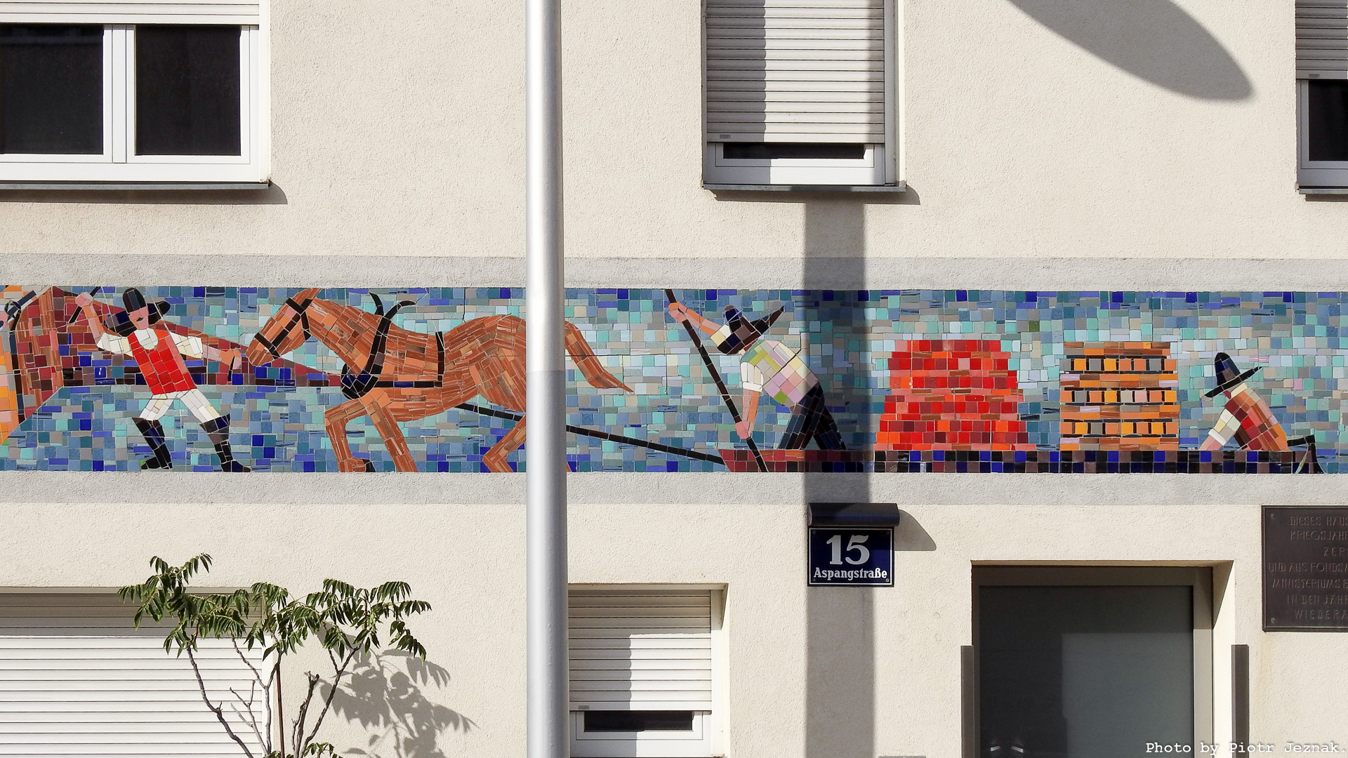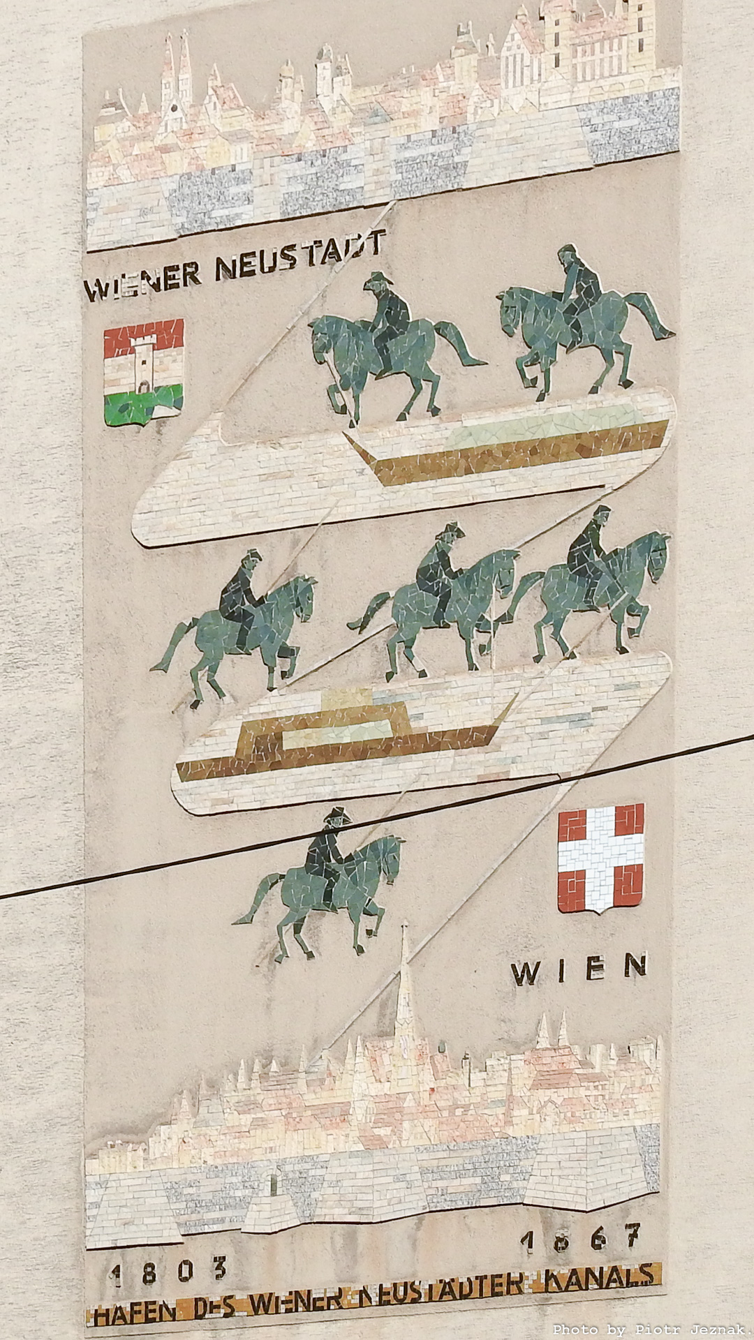 - Part of the mosaic (barge on the Wiener Neustadt Canal) on the building at Aspangstraße 15, 1030 Vienna. Hans Fischer, 1969.